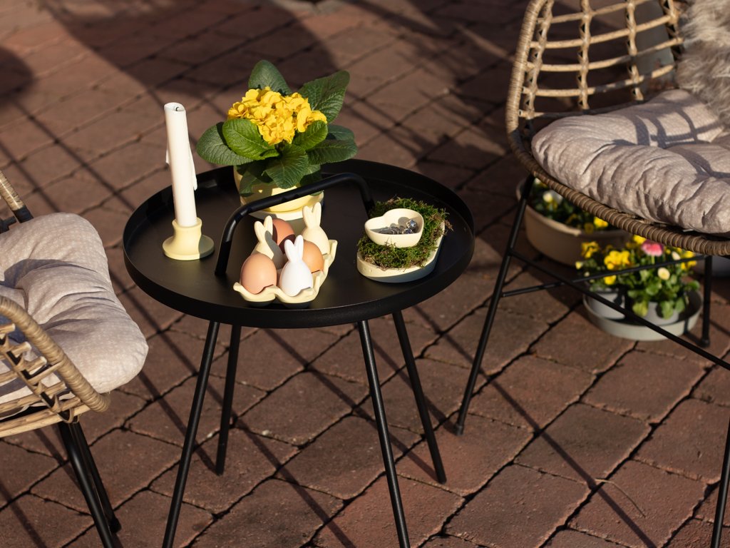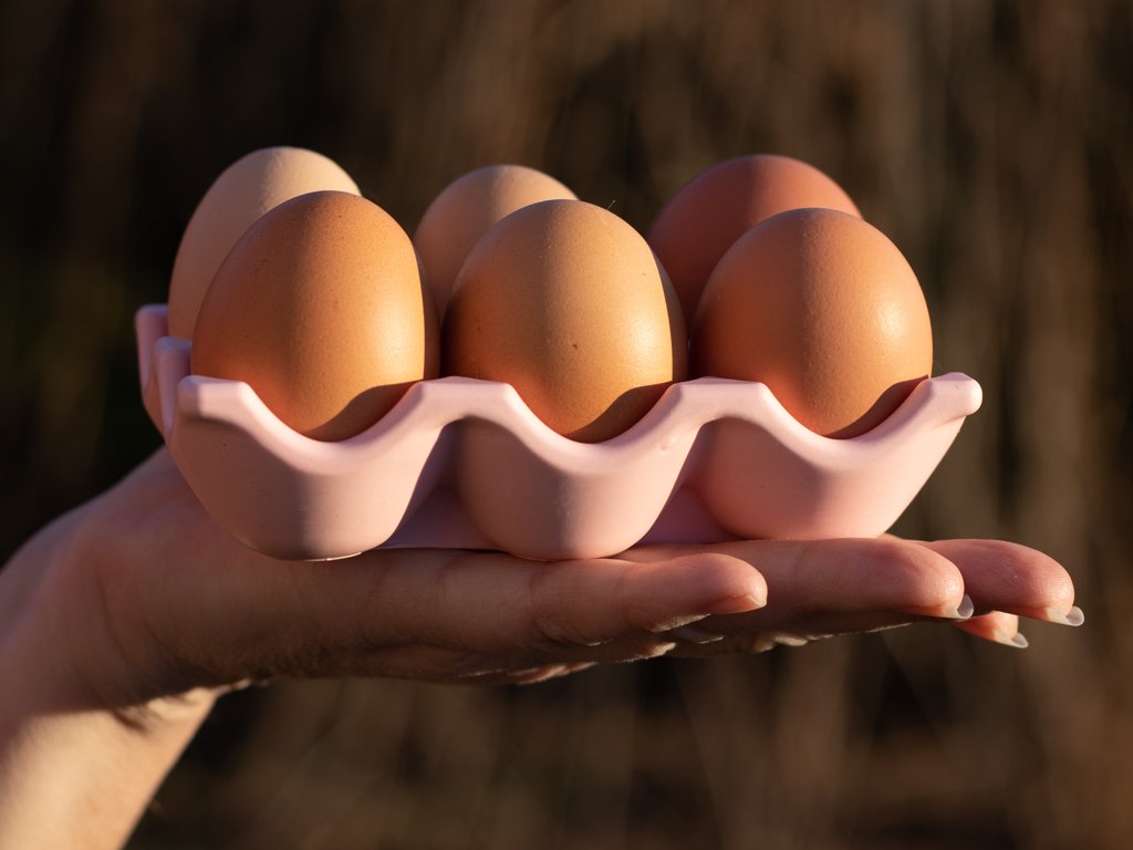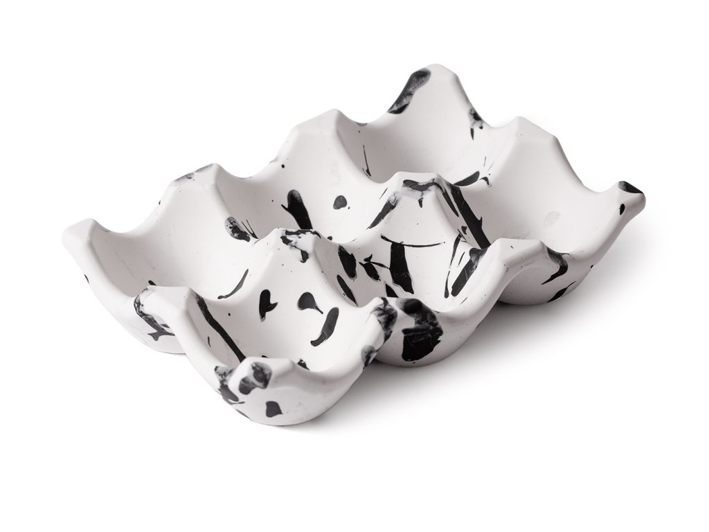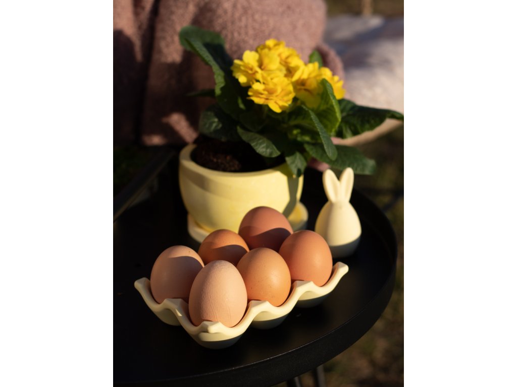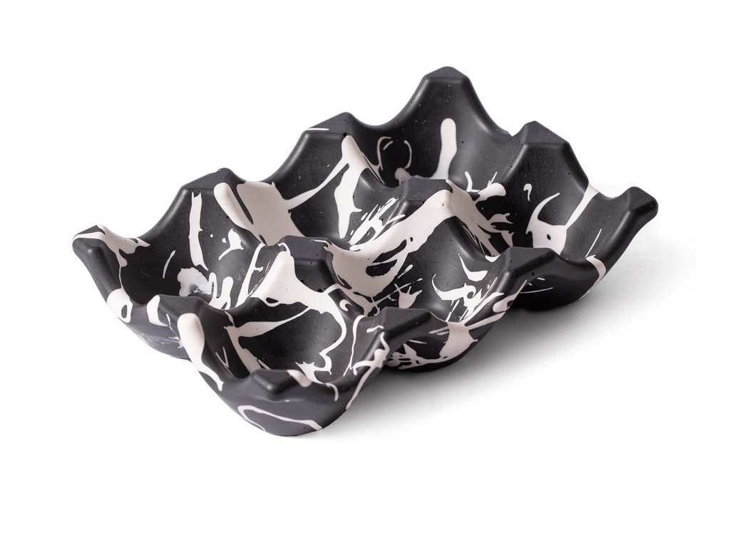 Stojánek na vajíčka nebo velikonoční kraslice je ručně odlitý z lehkého betonu. Dostat ho můžete v 6 barevných variantách - jednobarevná růžová, zelená, žlutá a bílánebo strakatá bílo-černá a černo-bílá. Každý kus je na spodní straně opatřen čtyřmi filcovými kolečky, která brání poškrábání povrchu. Stojánek může sloužit jako velikonoční dekorace na vystavení kraslic, můžete ho vyplnit jinými dekoracemi nebo ho můžete použít jako klasický stojánek na vajíčka třeba do lednice.