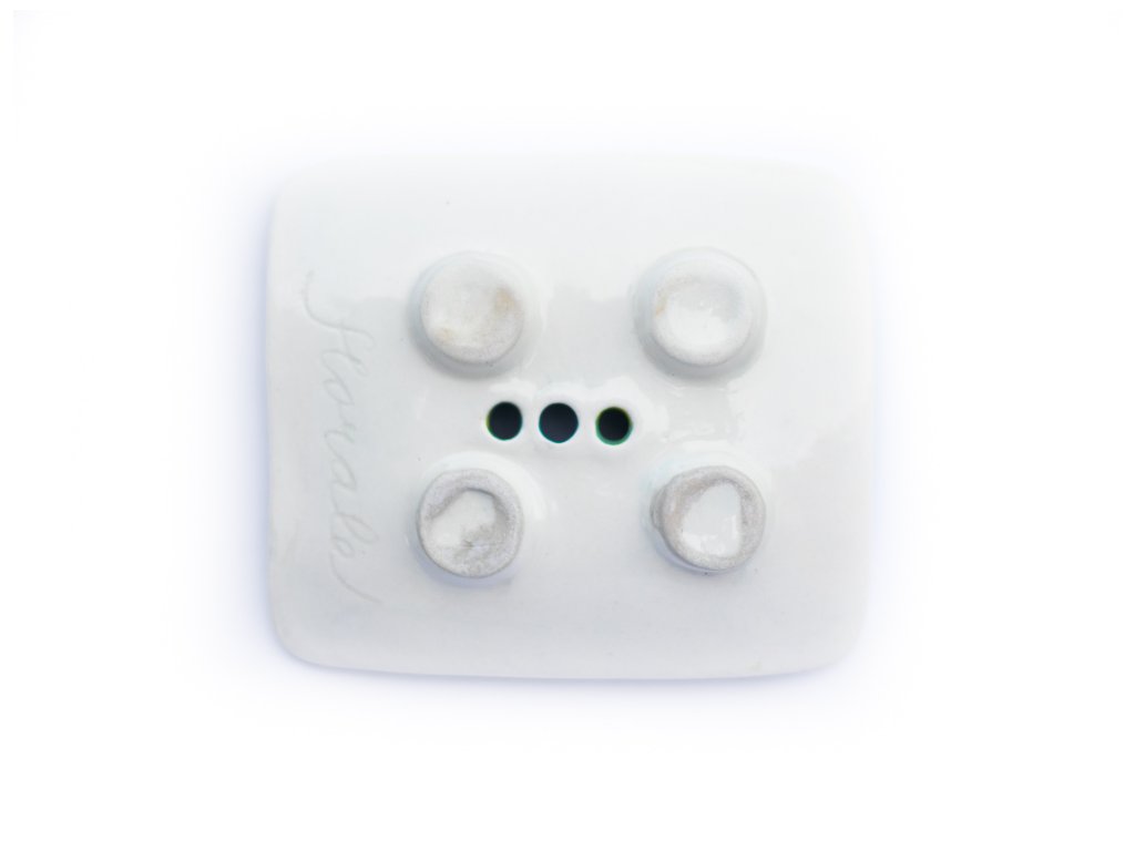 Keramická mýdlenka pochází z šumavské keramické dílny, kde ji pro nás ručně vyrábí z kvalitní italské či německé hlíny. Po samotném vyrobení je mýdlenka dvakrát vypálená v peci a poté ručně malovaná a modelovaná. Tuto designovou variantu zdobí plastický design v podobě listů. Díky třem odtokovým dírkám ve dně a čtyřem keramickým nožičkám je mýdlenka nejen krásná, ale také praktická.