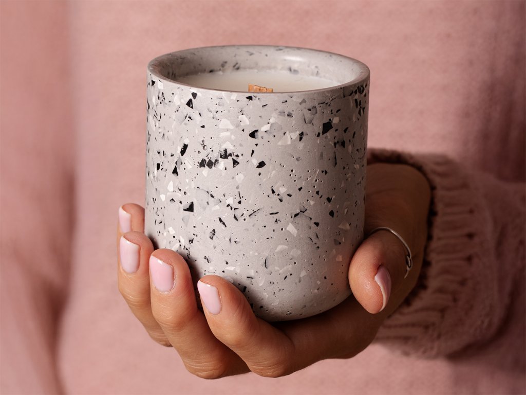 PODZIMNÍ ŠEDÁ TERRAZZO SVÍČKA