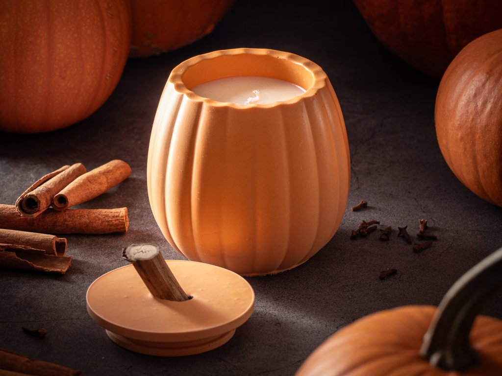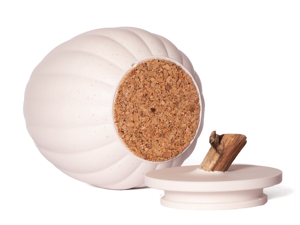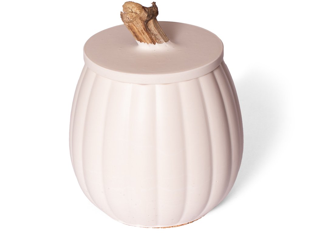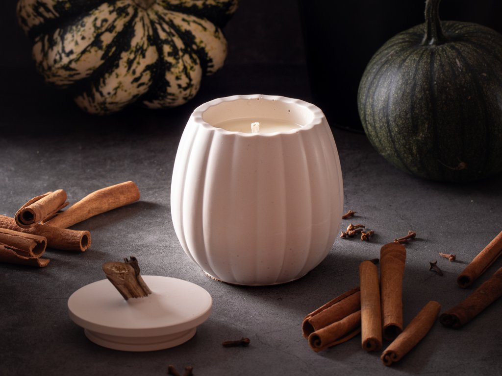 LIMITOVANÁ PODZIMNÍ EDICE | Naše ručně vyrobená sójová svíčka s dýňovým kořením v oranžovém nebo bílém obalu ve tvaru dýně je skvělá na chladné podzimní večery. Její sladká kořeněná vůně, kterou tvoří 100% přírodní esenciální oleje skořice, zázvoru, hřebíčku, muškátového oříšku a bay, vám doma navodí sváteční atmosféru a nahradí vůni pečení. Její originální ručně vyrobený obal ve tvaru dýně je doplněný víčkem ve stejné barvě s dýňovou stopkou, která pochází z mexické juky z naší zahrady.